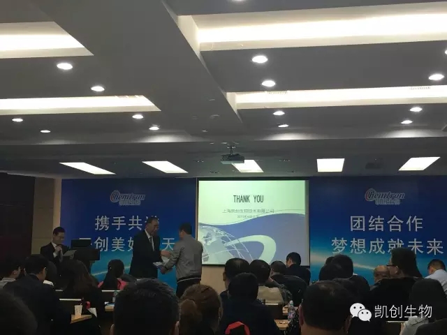 2016年4月14日迎來首屆《上海凱創生物精英培訓班》順利召開!本次培訓班由我公司商務部經理黃建明全程主持。首先,我公司董事長張國華先生致開幕歡迎詞。此次培訓先從凱創的發展史開始,詳細介紹公司特色產品,并由各大區經理帶領學員們參觀我司100000級潔凈廠房、先進設備、行政區域等。學員們反響熱烈,上午課程臨近結束張國華董事長親自為學員們頒發《Poc現場醫護現狀和進展》作為獎勵。